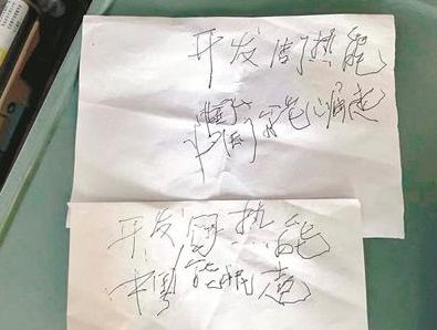圖為李德威教授彌留之際寫的10個(gè)字:開發(fā)固熱能,中國(guó)能崛起。圖片來源:楚天都市報(bào)