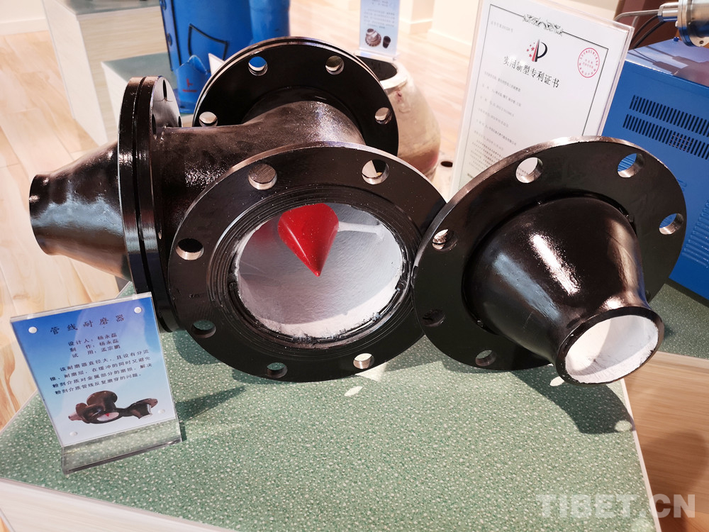 圖為楊永磊設(shè)計(jì)的管線耐磨器,直徑大,且設(shè)有分流錐、耐磨層,解決了粉劑介質(zhì)管線反復(fù)磨穿的問(wèn)題 攝影:李元梅