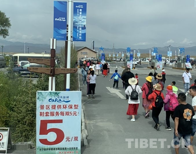 2019年8月5日,記者在茶卡鹽湖景區(qū)看到,游客們正在井然有序地排隊(duì)等候購(gòu)票進(jìn)入園區(qū),道路交通秩序良好,停車場(chǎng)車輛整齊停放,“環(huán)保型鞋套服務(wù)5元一雙”的租賃標(biāo)識(shí)十分醒目,此外,咨詢服務(wù)區(qū)、票務(wù)服務(wù)區(qū)、游客集散地、產(chǎn)品展銷區(qū)等八個(gè)功能區(qū),為游客們提供了旅游餐飲、旅游互動(dòng)體驗(yàn)等多位一體的旅游綜合服務(wù)。