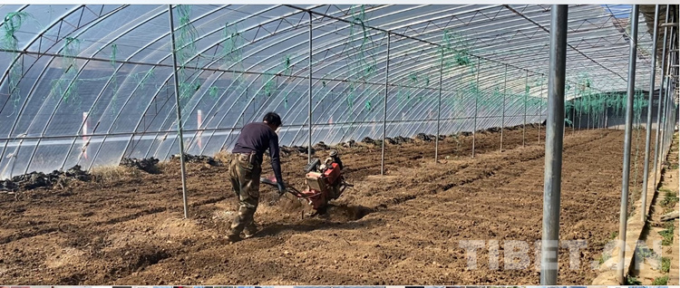 中國西藏網(wǎng)訊 “噠、噠……”2月27日,在四川省甘孜藏族自治州理塘縣濯?,F(xiàn)代農(nóng)業(yè)園區(qū)的康藏陽光種植基地,濯桑鄉(xiāng)漢戈村村民降央開著手扶拖拉機在蔬菜大棚里耕地。