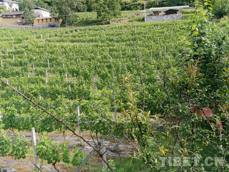 “平時做點小買賣,再加上其他收入,夠養(yǎng)活家人了。”三老在說話間,臉上揚起幸福的笑容?!拔覀儼哑甙水€地都租給企業(yè)種葡萄了,1畝地每年還有1000多元錢的租金收入?!苯陙?,哈達村采取“政府+企業(yè)+農(nóng)戶”的方式,堅持走民族團結(jié)和產(chǎn)業(yè)振興相結(jié)合的路子,引進葡萄酒種植生產(chǎn)公司,助力當?shù)亟?jīng)濟發(fā)展,促進民族團結(jié),帶領(lǐng)村民走上致富路?!斑@片就是我家的葡萄園,年齡大了,自己也不種地了?,F(xiàn)在有企業(yè)幫忙種植,地不荒還能有收入?!痹谶h眺三老家的葡萄園時,三老指著葡萄園的另一邊告訴我們,那就是村里的廣場,“我經(jīng)常去廣場和大家一起跳弦子舞,很開心。”