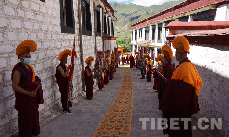 圖為8月4日,堆龍德慶區(qū)桑普寺僧眾列隊迎接十一世班禪的到來 攝影:王淑