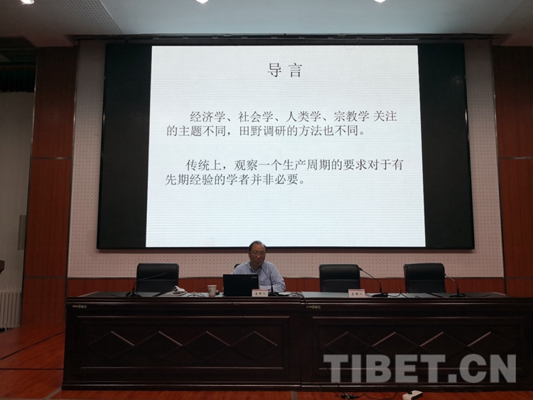 圖為中國(guó)藏學(xué)研究中心社會(huì)經(jīng)濟(jì)研究所所長(zhǎng)、研究員扎洛授課