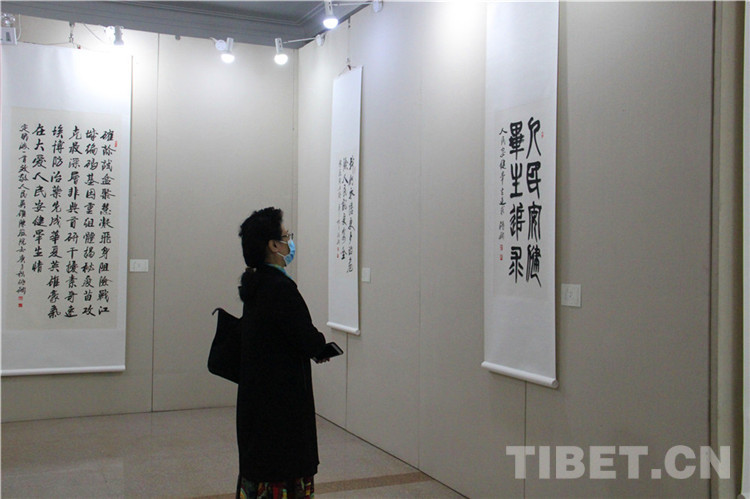 本次展覽由西藏自治區(qū)文學(xué)藝術(shù)界聯(lián)合會(huì)、西藏高山文化發(fā)展基金會(huì)主辦,西藏自治區(qū)人民政府駐北京辦事處和《一帶一路與茶馬古道》籌委會(huì)協(xié)辦,由張飆、鄭山麓、黃家林三位藝術(shù)家聯(lián)袂,以書法、詩詞、繪畫的藝術(shù)形式展現(xiàn)了在黨中央堅(jiān)強(qiáng)領(lǐng)導(dǎo)下,西藏自治區(qū)取得的巨大成就,以及西藏自治區(qū)各族人民加強(qiáng)民族團(tuán)結(jié)、建設(shè)美麗西藏的生動(dòng)實(shí)踐。同時(shí),本次展覽展品中還包括了記錄醫(yī)護(hù)工作者抗擊新冠肺炎疫情的優(yōu)秀作品。在上百件展品中,張飆創(chuàng)作的反映西藏自治區(qū)經(jīng)濟(jì)社會(huì)發(fā)展成就的詩詞、書法,鄭山麓創(chuàng)作的呈現(xiàn)西藏自治區(qū)舞蹈藝術(shù)魅力的60米國畫長(zhǎng)卷《甲諧舞吉祥之盛世歡歌》,以及黃家林以布達(dá)拉宮為主題創(chuàng)作的油畫作品是展覽的亮點(diǎn),吸引觀眾紛紛駐足。