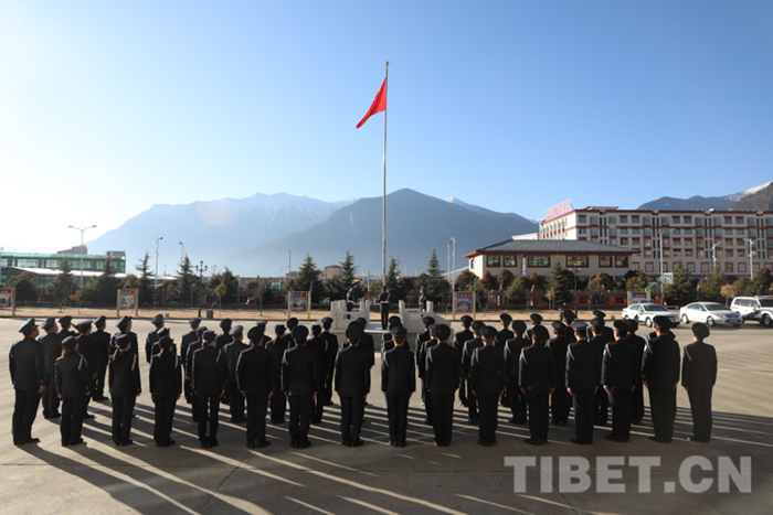 圖為林芝邊境管理支隊(duì)機(jī)關(guān)舉行升旗儀式 攝影:劉安震鏞
