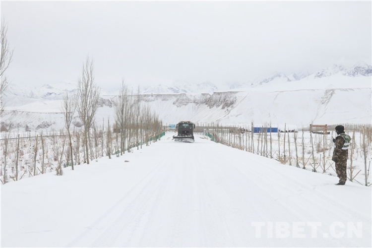 在持續(xù)降雪的西藏自治區(qū)西部地區(qū),武警官兵在確保道路交通不中斷的情況下,通過連續(xù)2天奮戰(zhàn),積雪路段冰雪已全部被清除,有效確保了過往司乘人員安全通行。(中國西藏網 通訊員/陸文凱 董尼么太)