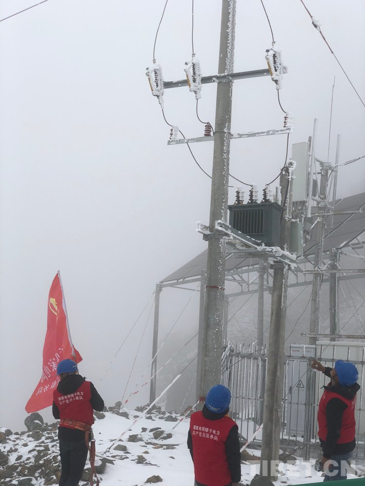 圖為國網(wǎng)西藏電力有限公司電力職工正在山南市隆子縣運維檢修