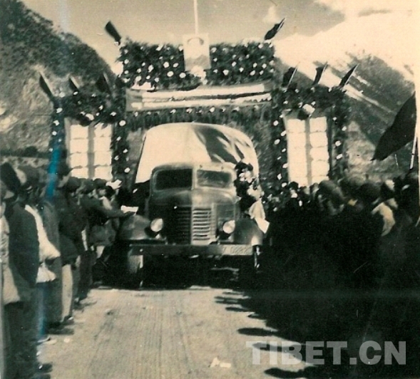 圖為筑路部隊(duì)在波密一帶修筑康(川)藏公路