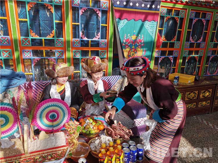在西嘎拉村普瓊家,一進(jìn)門,普瓊的女兒就為新到的“貴客”獻(xiàn)上潔白的哈達(dá),并祝福他們藏歷新年快樂。
