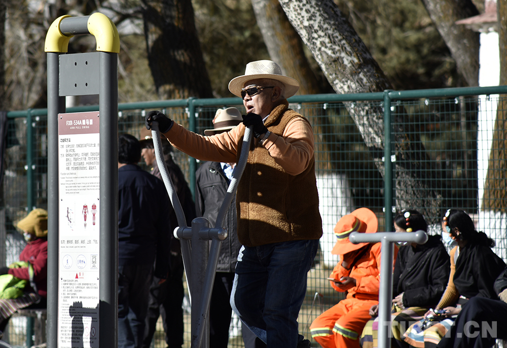 中國西藏網(wǎng)訊 “一二三四五六七八……”戴著便攜式擴音器,一位老大爺照常在宗角祿康公園健身場帶領(lǐng)大家健身鍛煉。