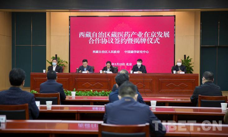 中國西藏網(wǎng)訊 3月23日,西藏自治區(qū)藏醫(yī)藥產(chǎn)業(yè)在京發(fā)展合作協(xié)議簽約暨揭牌儀式在京舉行。西藏自治區(qū)人民政府、中國藏學(xué)研究中心、西藏自治區(qū)衛(wèi)生健康委員會(藏醫(yī)藥產(chǎn)業(yè)推進辦公室)、山南市藏醫(yī)醫(yī)院、西藏甘露藏醫(yī)藥產(chǎn)業(yè)集團有限公司等相關(guān)負(fù)責(zé)人參加儀式。中國藏學(xué)研究中心黨組書記陳宗榮,西藏自治區(qū)人民政府副主席羅梅分別致辭,中國藏學(xué)研究中心總干事鄭堆主持。