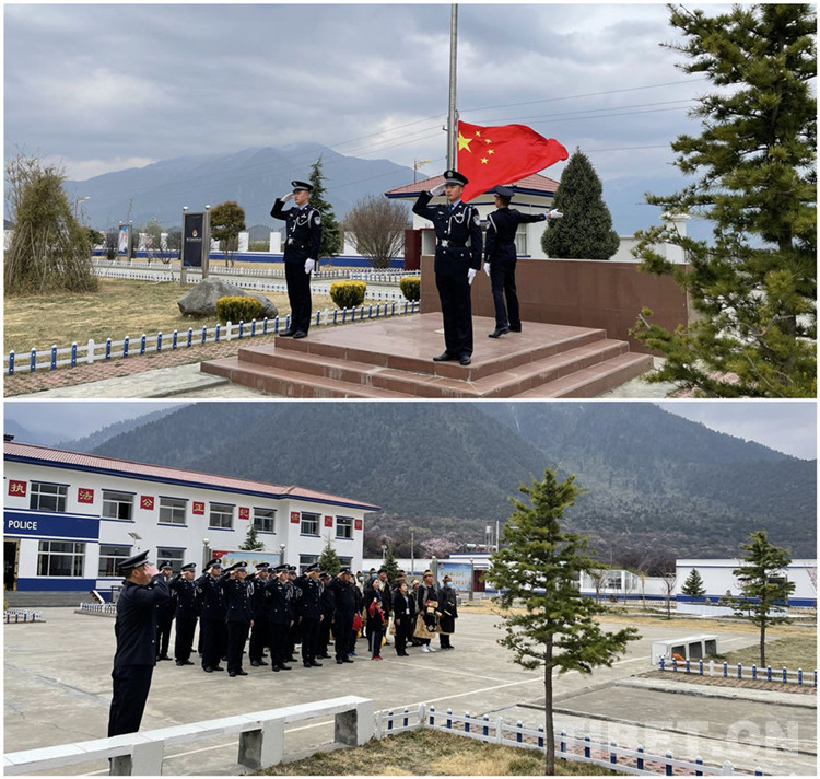圖為羌納邊境派出所舉行升旗儀式 段宇飛 攝