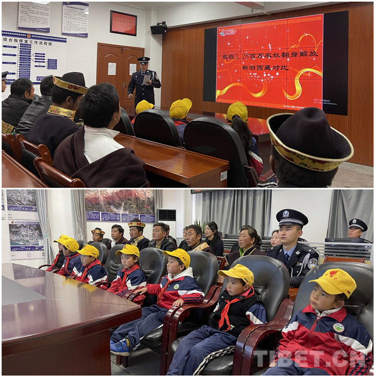 儀式結(jié)束后,派出所邀請(qǐng)學(xué)校師生及群眾代表參觀警營(yíng),民警貢秋羅布還為學(xué)生們上了一堂生動(dòng)的西藏百萬農(nóng)奴解放歷史課,講解了西藏百萬農(nóng)奴在中國(guó)共產(chǎn)黨的帶領(lǐng)下,打破政教合一的封建農(nóng)奴制的枷鎖;講述了短短幾十年跨越上千年的社會(huì)主義新西藏的發(fā)展奇跡。課后,小學(xué)生多吉說,“從這堂課里,知道以前的小孩多么可憐,現(xiàn)在我們有了警察叔叔和老師們的幫助,一定要好好學(xué)習(xí),長(zhǎng)大以后報(bào)效祖國(guó)。”