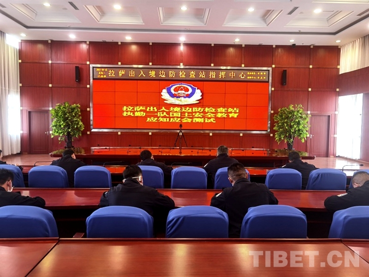 圖為拉薩出入境邊防檢查站執(zhí)勤一隊(duì)國土安全教育應(yīng)知應(yīng)會測試