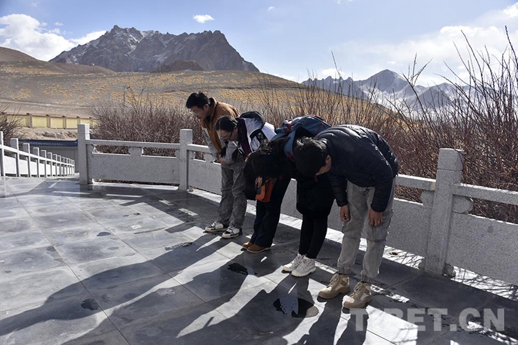 圖為中國西藏網阿里采訪組一行,在阿里地區(qū)獅泉河烈士陵園向長眠于此的烈士們鞠躬致敬