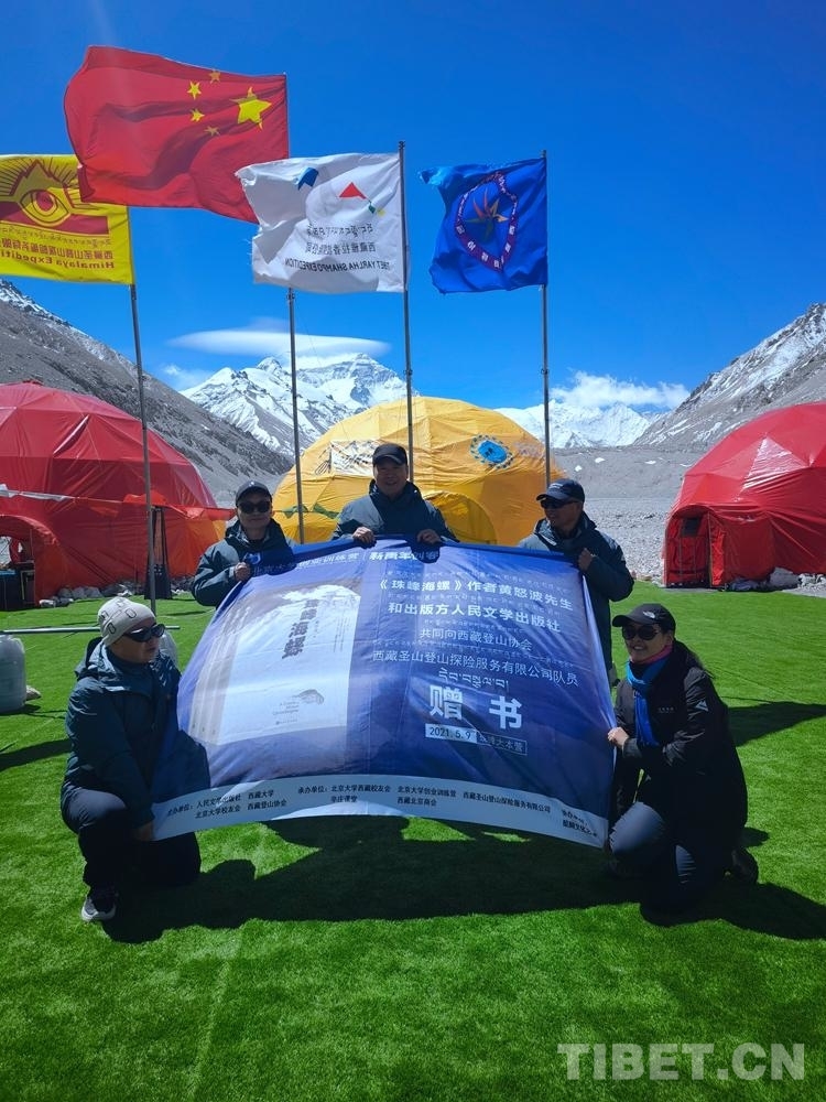 中國西藏網(wǎng)訊 5月9日,在位于西藏自治區(qū)日喀則市的珠峰大本營,長篇小說《珠峰海螺》的作者黃怒波先生和該書的出版方人民文學出版社,共同向日喀則市、西藏登山協(xié)會、西藏圣山登山探險服務有限公司隊員贈書。