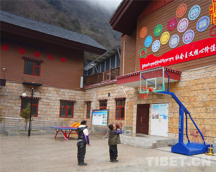 圖為在玉麥鄉(xiāng)小學(xué)籃球場(chǎng)打球的小朋友 攝影:王茜