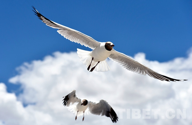 圖為班公湖岸滑翔的棕頭鷗 攝影:王媛媛