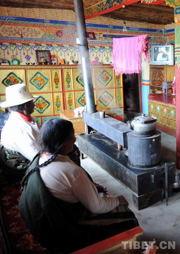 我們來到二村,時(shí)任村黨支部書記的桑旦早早地就迎候在村口,給人一種熱情而沉著的印象。他把我們領(lǐng)進(jìn)村文化室,屋里牛糞燒得正旺,暖烘烘的。桌子上擺有二村的特色風(fēng)干牦牛肉,桑旦將熱氣騰騰的酥油茶端來。我們一邊細(xì)細(xì)品嘗牦牛肉的獨(dú)特風(fēng)味,一邊與桑旦攀談起來。桑旦話語雖不多,但每說一句,總能道出二村昔日的貧窮與今日走上安康生活的感慨。