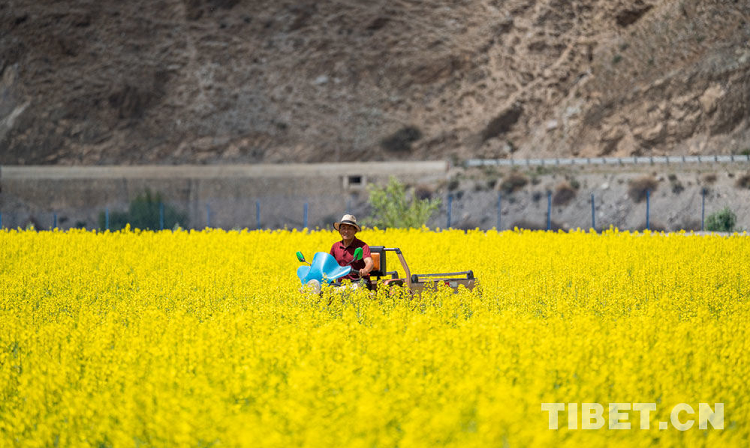 圖為山南市在油菜花田中勞動的群眾 攝影:趙耀