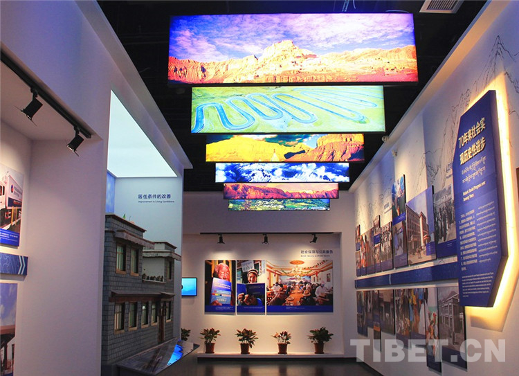 據(jù)陳宗榮介紹,“豐功偉業(yè)”展覽以西藏和平解放70年光輝歷程為主線,設(shè)計(jì)了“社會(huì)制度實(shí)現(xiàn)偉大飛躍”“新時(shí)代新飛躍”“西藏的發(fā)展進(jìn)步根本在于中央的關(guān)心”等7個(gè)主題展區(qū)。展覽運(yùn)用350多幅圖片、61件(套)珍貴實(shí)物和文獻(xiàn),采用虛擬現(xiàn)實(shí)、多媒體互動(dòng)等現(xiàn)代科技手段,利用實(shí)物模型、場(chǎng)景復(fù)原、幻影成像、三維模型等多種形式,集中展現(xiàn)了70年來(lái)西藏發(fā)生的歷史性轉(zhuǎn)變、取得的歷史性成就。