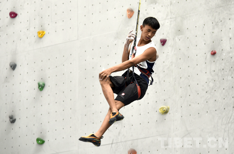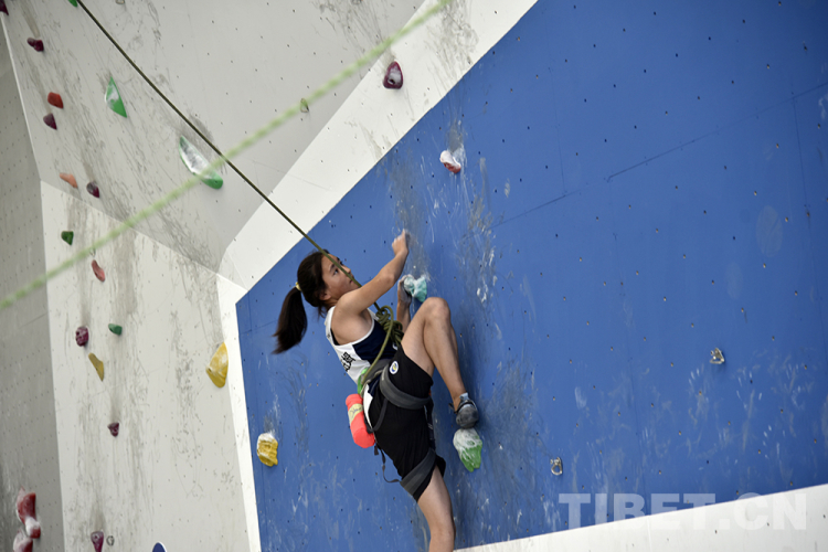 圖為專(zhuān)業(yè)運(yùn)動(dòng)員進(jìn)行攀巖表演 攝影:王媛媛