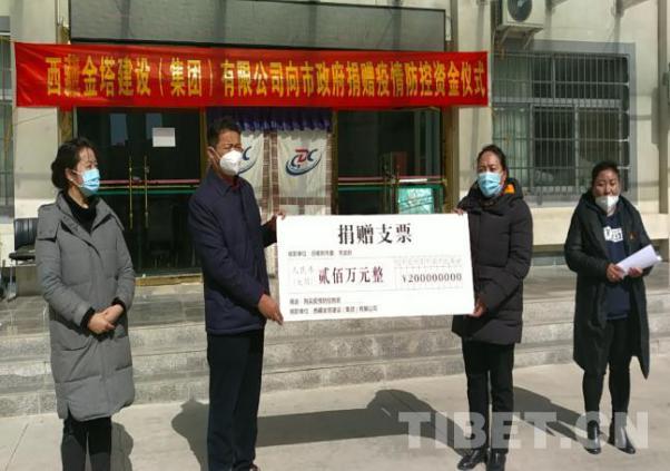 圖為西藏金塔集團向日喀則市政府捐贈疫情防控資金