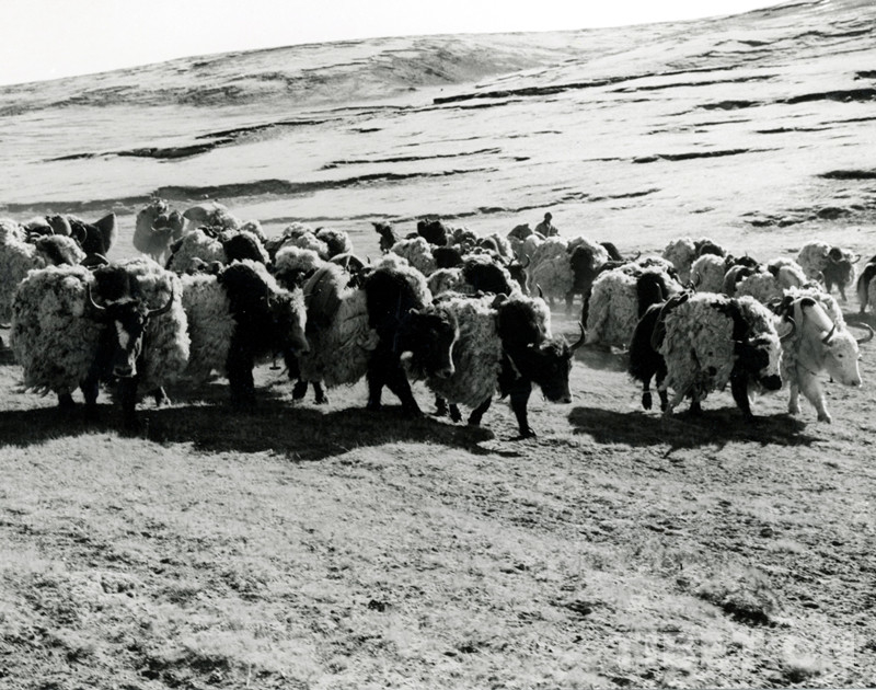 這是過去馱運(yùn)所交售羊毛的牦牛隊(唐召明1987年攝)