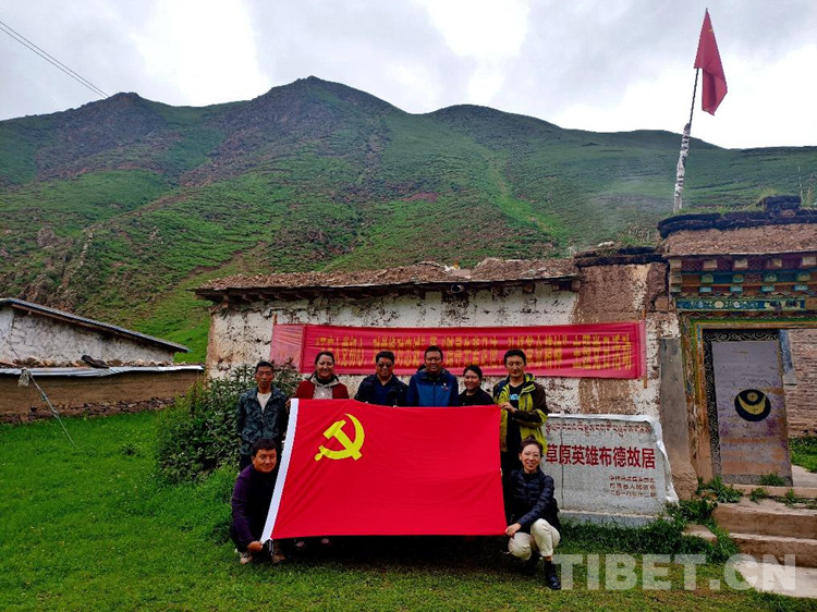 我們?cè)诓嫉鹿示咏邮芰艘惶蒙鷦?dòng)的黨史教育。當(dāng)結(jié)束參觀,走出故居門時(shí),我們一下子更加領(lǐng)悟到眼前的村莊、山川、河谷為什么如此寧靜、美好而又詳和的真正原因了。在大家提議下,便展開黨旗,在“草原英雄布德故居”前合影,這是一次最難忘的黨日活動(dòng)。當(dāng)上車離開時(shí),我們與頓珠扎西同志和其家人依依不舍。英雄布德是我們?nèi)松飞系囊蛔S碑和榜樣,將照耀我們的行程,增強(qiáng)我們的斗志,不忘初心,牢記使命,繼續(xù)前行。(中國(guó)西藏網(wǎng) 文/馮智 本文系中國(guó)藏學(xué)研究中心“那曲市民族交往交流交融史實(shí)調(diào)研組”供稿)