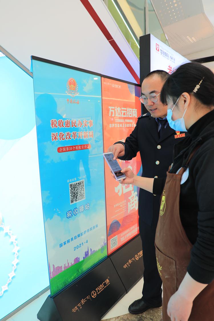 圖為西藏稅務(wù)系統(tǒng)工作人員宣傳稅收知識(shí)