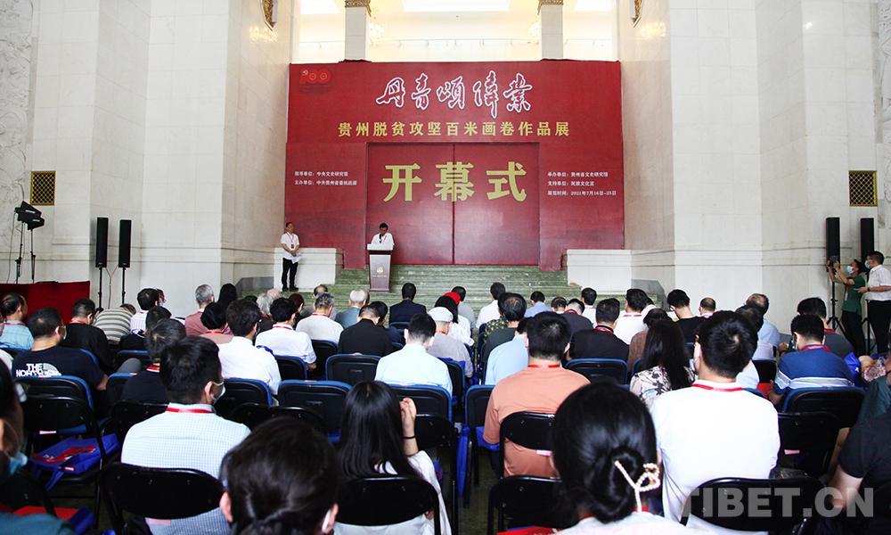 中國西藏網(wǎng)訊 7月16日,由中央文史研究館指導(dǎo)、貴州省委統(tǒng)戰(zhàn)部主辦,貴州省文史研究館承辦的《丹青頌偉業(yè)——貴州“脫貧攻堅(jiān)”百米畫卷》主題展覽在北京民族文化宮隆重開幕。