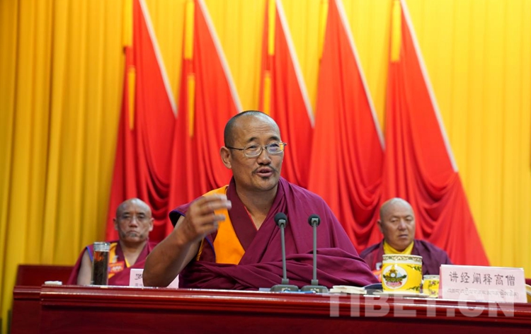 中國(guó)西藏網(wǎng)訊 8月5日,中國(guó)佛教協(xié)會(huì)西藏分會(huì)第六屆藏傳佛教講經(jīng)闡釋交流會(huì)在西藏自治區(qū)拉薩市召開(kāi),全國(guó)政協(xié)常委、中國(guó)佛教協(xié)會(huì)副會(huì)長(zhǎng)、中國(guó)佛教協(xié)會(huì)西藏分會(huì)會(huì)長(zhǎng)班禪額爾德尼?確吉杰布主持并講話。