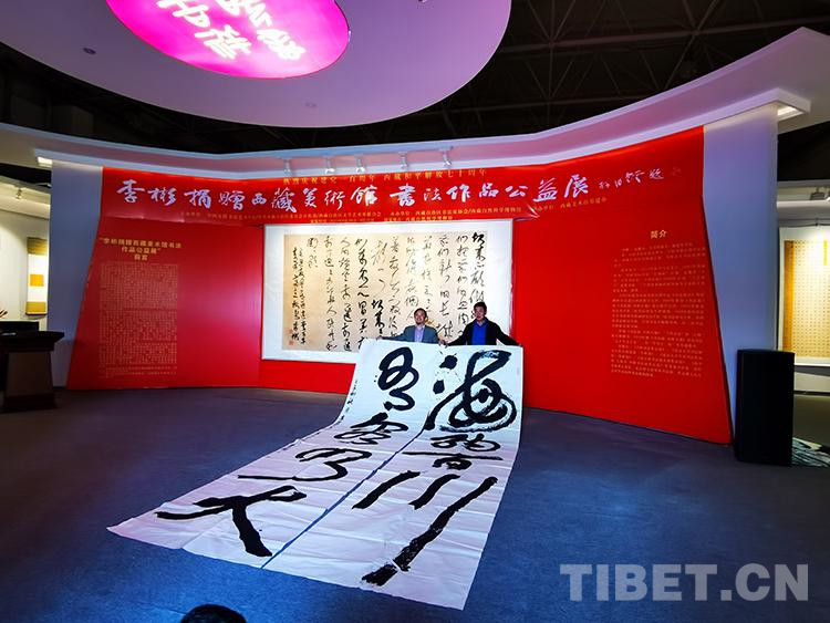 圖為李彬捐贈(zèng)西藏美術(shù)館書(shū)法作品公益展現(xiàn)場(chǎng) 攝影:王媛媛