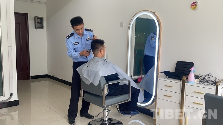 民警頓珠主動承擔(dān)起了為戰(zhàn)友們理發(fā)的工作。理發(fā)這門手藝,是頓珠自學(xué)來的。參加工作之前,他就在老家村莊和鄉(xiāng)親們相互幫忙剪頭發(fā)。參加工作后,他就利用回家探親休假的時間學(xué)習(xí)理發(fā)技術(shù)。時間久了,他的理發(fā)技術(shù)越來越成熟,手藝也越來越好。每當(dāng)節(jié)假日、周末,大家在休息的時候,他的小理發(fā)室就會變得異?;鸨?,洗、剪、吹,整天都是忙忙碌碌的。漸漸地“托尼”老師——頓珠的名聲傳遍了樟木鎮(zhèn),在鎮(zhèn)里工作的建設(shè)工人也常常會慕名前來。