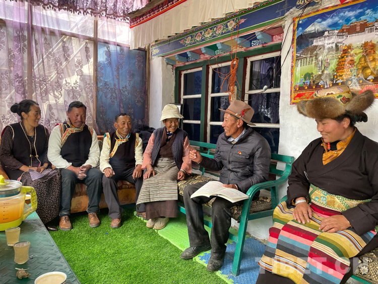 圖為索朗頓珠進(jìn)農(nóng)戶宣講黨史知識