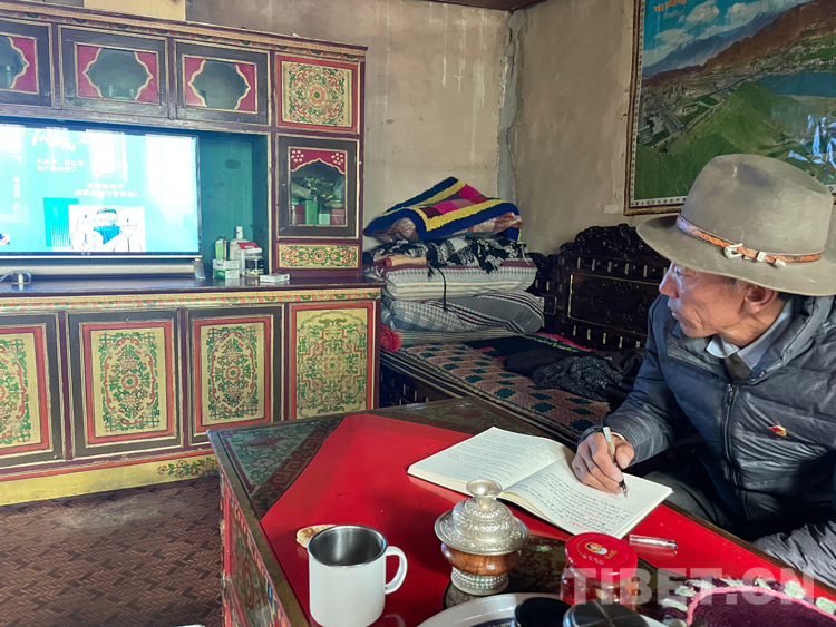 圖為索朗頓珠收聽收看時政新聞