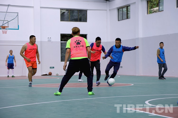 圖為五人制室內足球娛樂賽現(xiàn)場 攝影:尼瑪?shù)ぴ?/span>