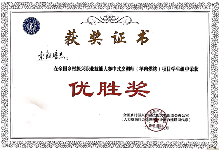圖為獲獎證書 西藏現(xiàn)代服務(wù)業(yè)技工學校供圖