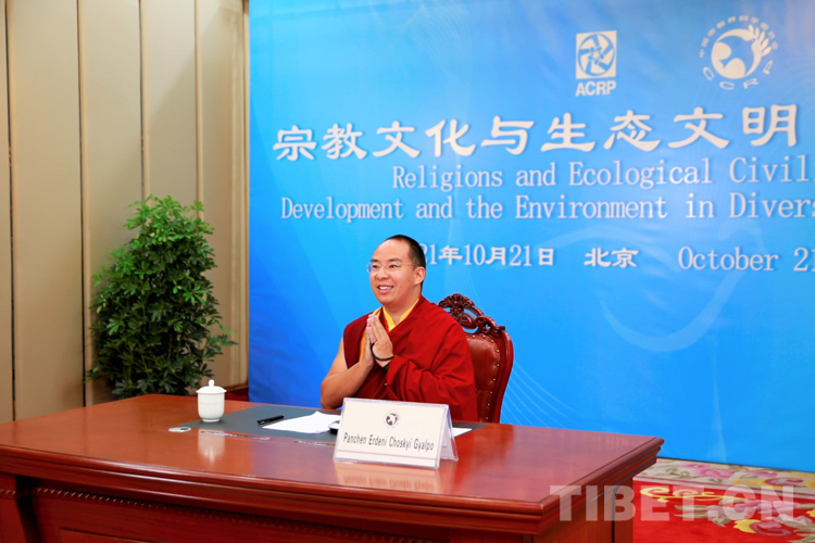 中國西藏網(wǎng)訊 10月21日,中國宗教界和平委員會(以下簡稱“中宗和”)組織召開亞洲宗教和平會議第九屆大會環(huán)境與發(fā)展分論壇暨“宗教文化與生態(tài)文明”國際研討會視頻會議。“中宗和”委員、中國佛教協(xié)會副會長班禪額爾德尼?確吉杰布在西藏自治區(qū)日喀則市以視頻連線方式參會,并作《共建人與自然生命共同體 建設(shè)清潔美麗世界》主題發(fā)言。