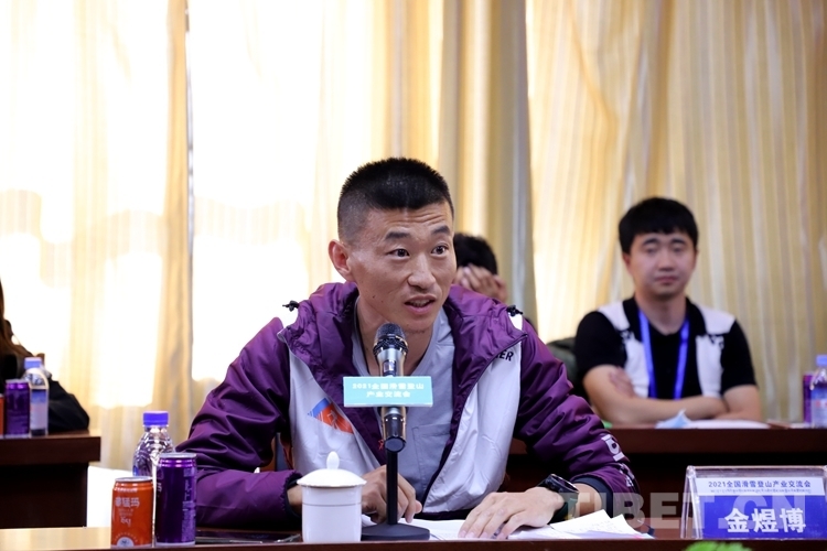 圖為滑雪登山國家青年隊教練金煜博作交流發(fā)言