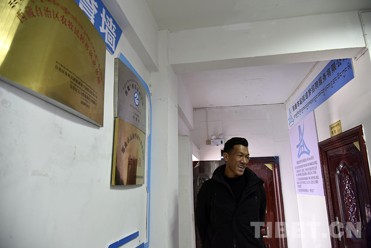 圖為白瑪赤列的勞務(wù)派遣公司里大家贈送的錦旗 攝影:王媛媛