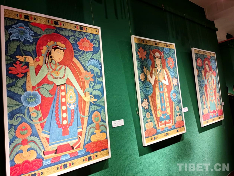 “我在畫作里添加了很多漸變色的處理,線條的勾畫更加輕盈,細(xì)節(jié)處理也更加細(xì)致。這些是我所創(chuàng)新的一些做法?!蔽鞑匦律瓶ó嫀熛聂斖颜f,“西藏的唐卡繪畫方法流傳至今,一直都保留著古老繪畫技藝與方法。隨著社會的發(fā)展以及人們意識、觀念的變化,對唐卡畫師的審美觀提出了更高的要求,要及時(shí)去了解社會的普遍審美觀念,不斷地去學(xué)習(xí)、去創(chuàng)新,但萬變不離其宗。”