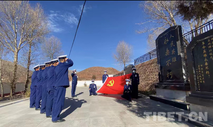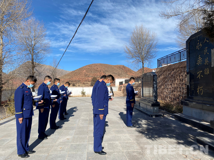 圖為貢覺縣駐防分隊祭奠英烈后重溫入黨誓詞