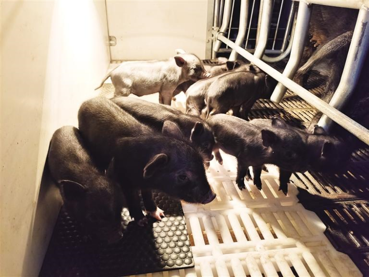 據(jù)了解,2021年8月中旬,體細胞克隆藏豬的配種工作已經(jīng)完成并成功懷胎。經(jīng)過114天左右精心護理,2021年12月8日首批9頭純種藏豬出生,均重0.55kg,體重最大的0.7kg。藏豬寶寶毛色純黑、眼睛通透、四肢穩(wěn)健,體細胞克隆母豬奶水充足,目前健康和生長狀況良好。