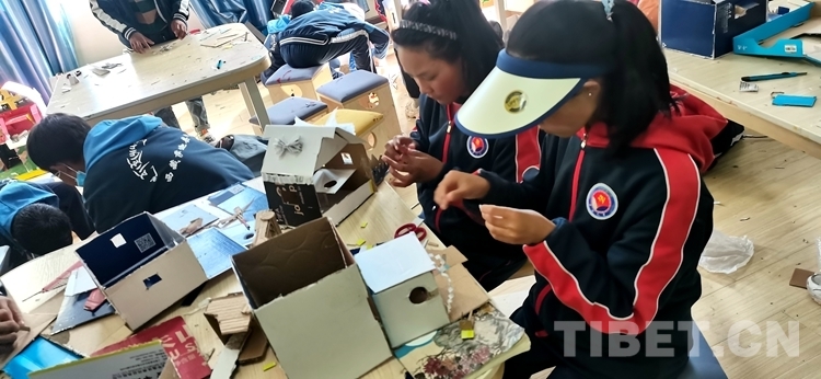 圖為薩迦縣中學手工剪紙社學生在完成自己的作品