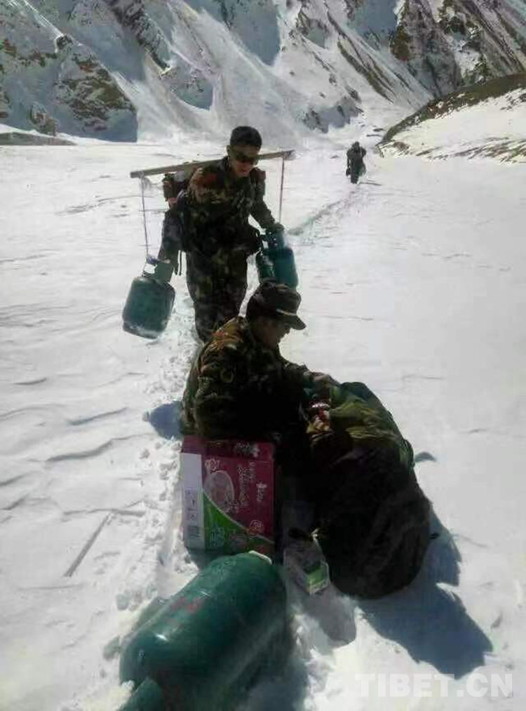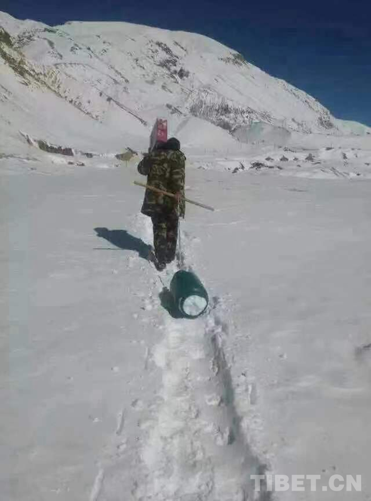 圖為尼瑪國杰與戰(zhàn)友一起輸送補(bǔ)給物資回執(zhí)勤點路上
