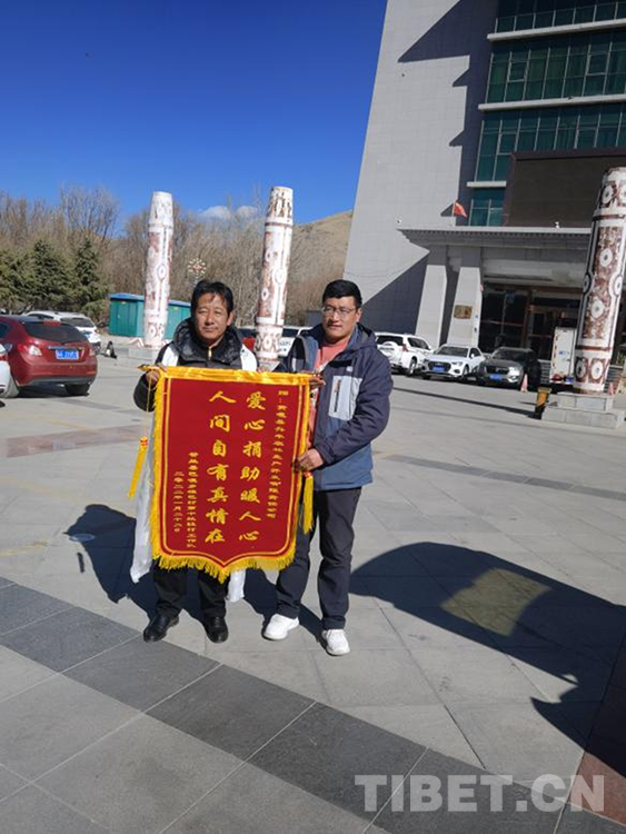為了表示謝意,雄巴村駐村工作隊成員赴貢嘎縣為興豐農(nóng)林生產(chǎn)開發(fā)有限責任公司,當面道謝并為該公司送上錦旗及該村特產(chǎn)干魚。(中國西藏網(wǎng) 記者/拉姆 圖片由雄巴村駐村工作隊提供)