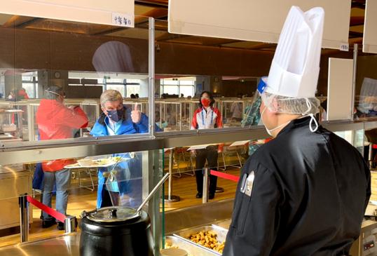 圖為巴赫為冬奧村餐飲服務(wù)點(diǎn)贊 圖片來源:中新網(wǎng)