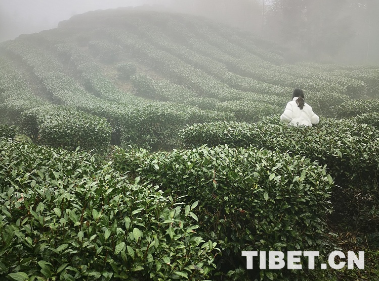 中國西藏網(wǎng)訊 青山如畫,白霧似紗,正所謂“高山云霧出好茶”,在一片霧氣繚繞的茶田里,五月茶業(yè)的工人已經(jīng)在采摘今年的頭春早茶了。五月茶業(yè)的總經(jīng)理王小霞告訴記者,由于貴州特殊的地理、氣候環(huán)境,貴州春季采茶時間平均比江浙地區(qū)早半個月左右,許多茶客在春節(jié)期間就能享受到頭春茶的鮮爽甘甜。獨特的自然環(huán)境造就了獨特的茶葉品質(zhì),就是這樣一片小小的晴隆茶,背后還有著一系列的鄉(xiāng)村振興故事。