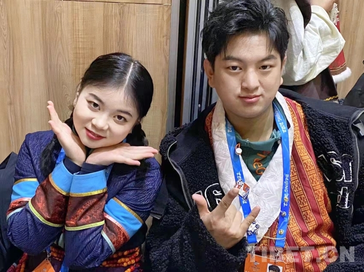 圖為參加北京冬奧會(huì)開幕式表演的珞巴族青年索朗卓瑪和門巴族青年多吉次旦 受訪者供圖